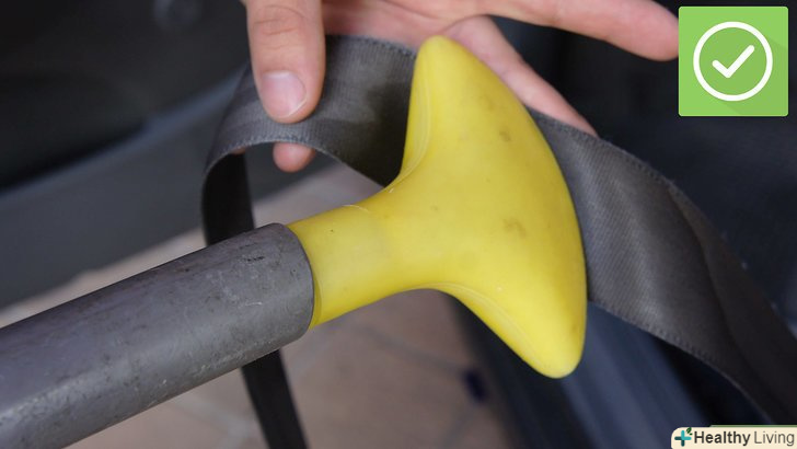 Розмотайте ремінь.точно так само, обережно потягніть ремінь, поки не спрацює обмежувач. Тепер можна виявити спори цвілі і дотягнутися до всіх ділянок ременя, щоб видалити запахи.- Зафіксуйте затиск поруч з котушкою, на яку намотується ремінь.знайдіть котушку, на яку намотується ремінь, коли він не використовується. Рухайтеся вгору по ременю до самої котушки. Встановіть металевий затиск якомога ближче до котушки. Тепер ремінь не буде змотуватися назад.