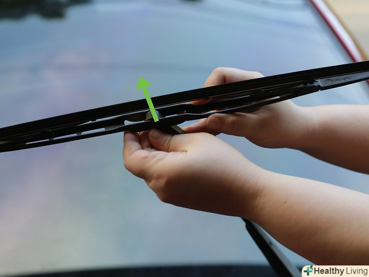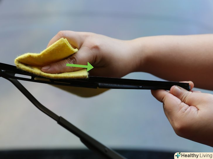 Висушіть краї щіток.гумовий гребінь на самому краю щітки-найважливіша частина двірників. Якщо він буде вологим і жорстким, то не зможе забезпечити належний контакт зі склом. М'яко протріть гумовий край чистою серветкою з мікрофібри плавним рухом, щоб висушити щітку. Потім змочіть частину серветки медичним спиртом і протріть гумовий край щітки уздовж, щоб прискорити процес висихання і обробити гуму.[8]- В процесі сушіння здавлюйте край двома пальцями, щоб він залишався рівним і чітким.