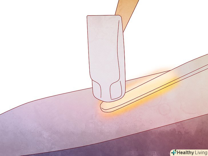 Куйте метал.- Стукайте по розпеченій заготівлі молотом, перевертаючи її. Вам доведеться кілька разів заново нагрівати заготовку, щоб обстукати всю заготовку.
