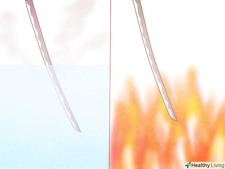 Загартуйте сталь.загартування це процес нагрівання та охолодження металу. Вам знадобиться вода або масло для загартування.- Занурюйте клинок кромкою і вістрям вниз. Таким чином, кромка буде більш твердою, спина клинка поле пластичної, і це дозволить відображати удари супротивників, не завдаючи шкоди клинку. Гарт дуже важлива частина процесу створення клинка, так як чим краще проведена Гарт, тим міцніше клинок.
