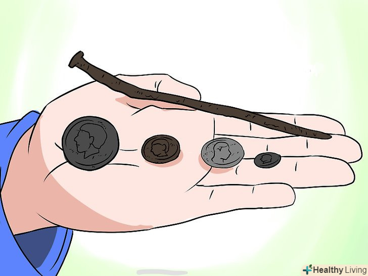 - Покладіть на стіл різні металеві предмети, пробки від пляшок, монети, цвяхи, і золоті прикраси.