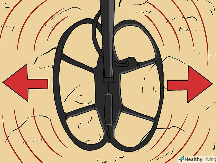 Рухайте котушку металошукача з боку в бік низько над поверхнею землі.намагайтеся не махати їм як маятником, щоб детектор завжди був на однаковій відстані над землею.