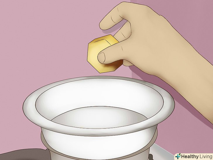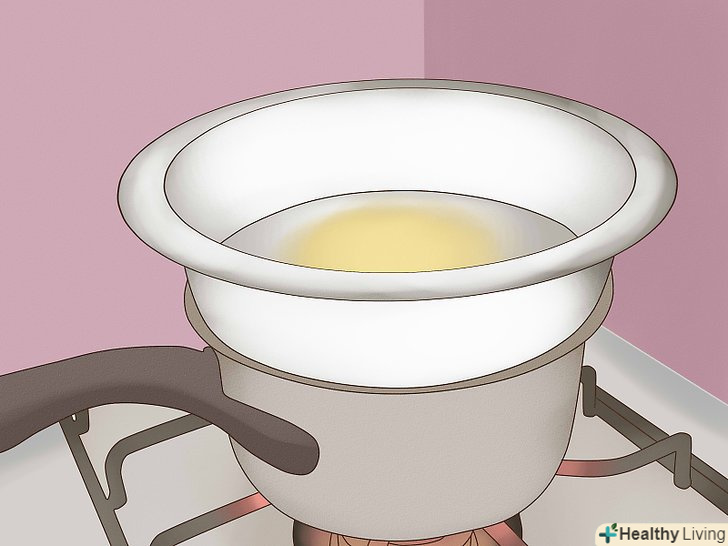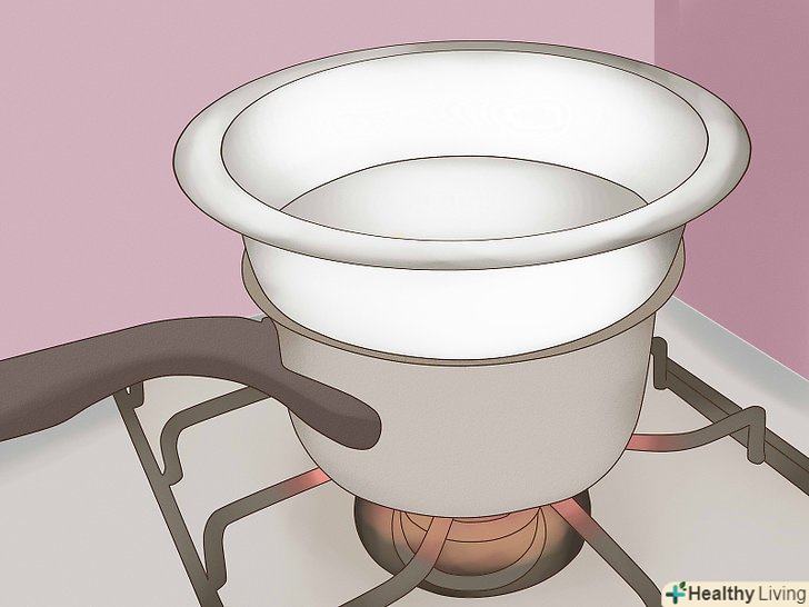 У Великий казанок наберіть трохи води.якщо у вас є пароварка, налийте в нижню частину води на висоту 2,5-5 см. Якщо у вас немає пароварки, то можна використовувати стару велику каструлю, також наповнивши її водою на висоту 2,5-5 см.- Каструля повинна бути достатнього розміру, щоб в ній помістився другий, менший казанок.