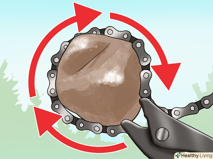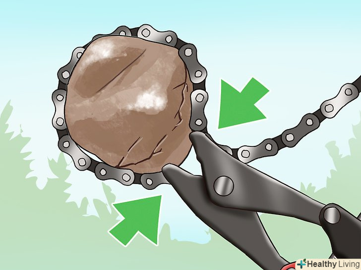 Візьміть труборіз.цей сантехнічний інструмент допоможе вам симетрично розколоти жеоду на дві рівні частини. Обмотайте ланцюг навколо жеоди.