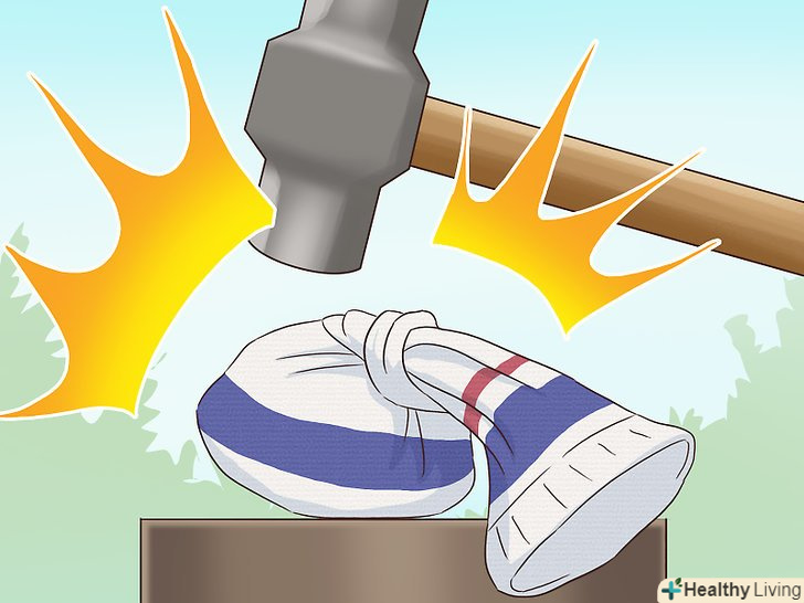 Візьміть невелику кувалду або молоток (бажано не будівельний) і вдарте по верхній центральній частині жеоди.щоб повністю розламати жеоду вам знадобиться нанести по ній кілька ударів. Швидше за все, це призведе до того, що жеода розламається на більш ніж два шматки, але цей метод найбільш прийнятний для дітей, хоча його і не рекомендується застосовувати для надзвичайно цінних і рідкісних жеод.[1]