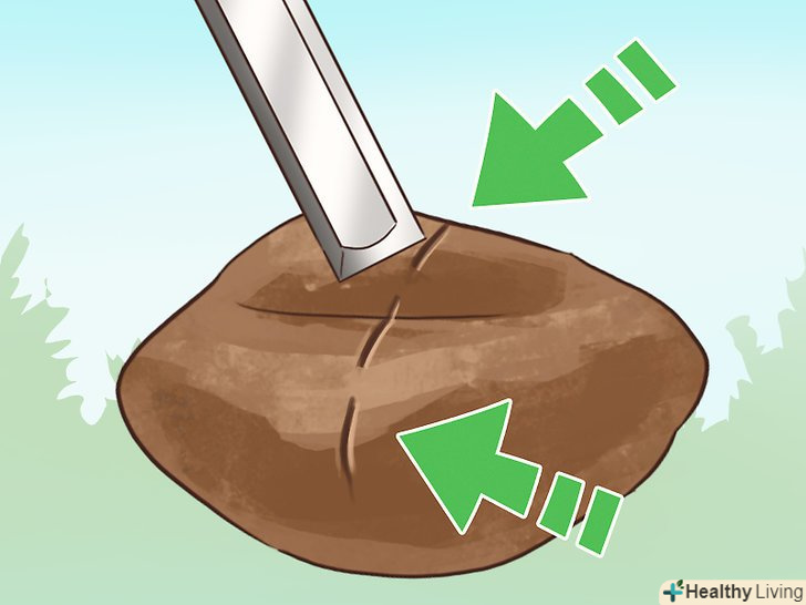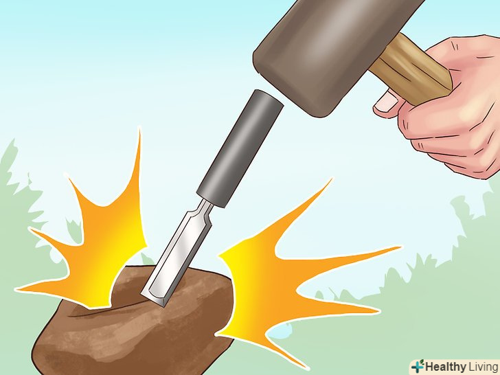 Візьміть долото або зубило, поставте його по центру каменю, а потім вдарте по ньому молотком.Бийте обережно, щоб розколоти тільки сам камінь.