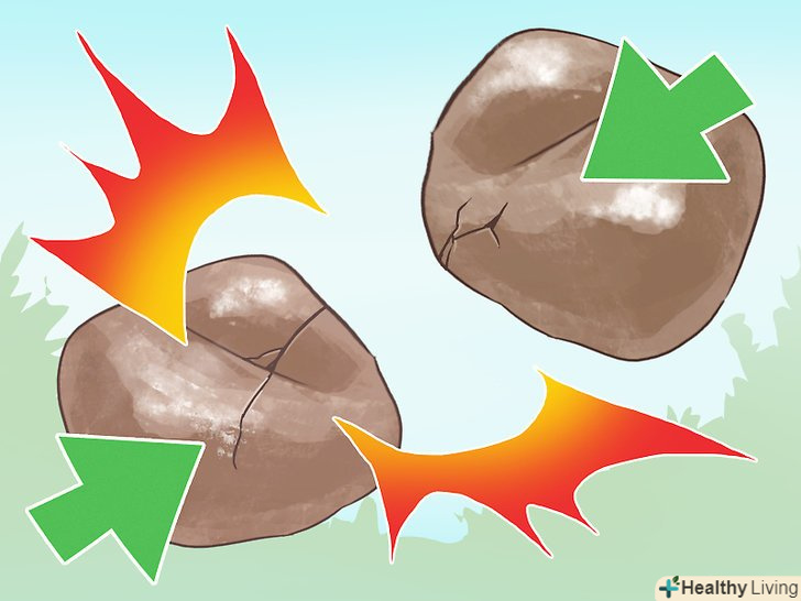 - Покладіть жеоду на великий камінь або на пісок на рівні землі (ніколи не ставте її на дерево, наприклад, на стіл для пікніка або дерев'яна підлога), щоб отримати найкращий результат і безпечно розколоти жеоду.