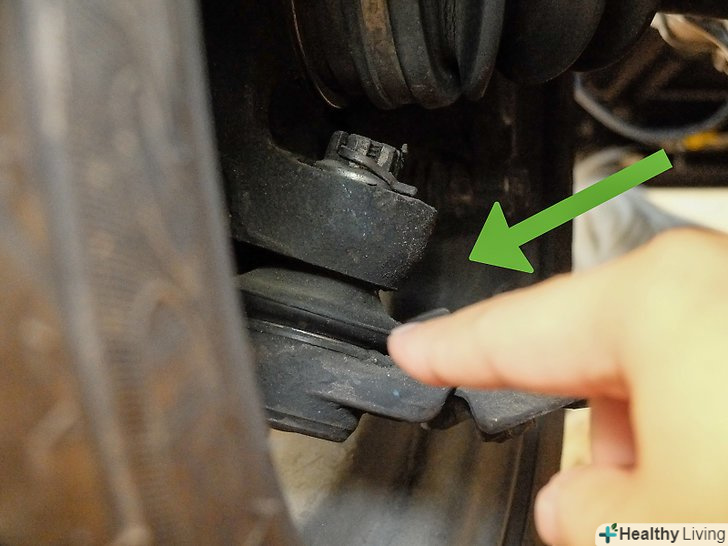 Знайдіть Покажчик зносу.у той час як ваш транспортний засіб нерухомо стоїть на землі, загляньте під машину, подивіться на нижню частину поворотного кулака, прикріпленого до колеса. Найпоширеніший індикатор-це прес-Маслянка, яка служить як покажчик зносу. Гарнітура, або втулка колеса, буде стирчати з нижньої частини корпусу шарніра приблизно на половину дюйма (1,25 сантиметра). Якщо опора зношується, втулка колеса буде западати в корпус. Поки втулка колеса висовується, шарнір повинен бути в порядку. Якщо ж втулка колеса знаходиться на одному рівні з корпусом або ж більш того запалу, вам потрібно замінити кульовий шарнір.[1]- Якщо ви не можете знайти Покажчик зносу, або якщо індикатор не дає вам достатньо ясний знак, підніміть автомобіль, щоб оглянути шарнір більш ретельно.