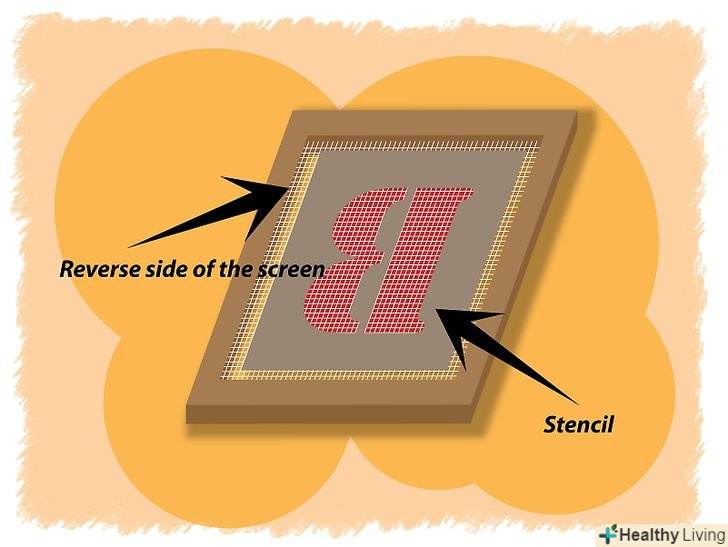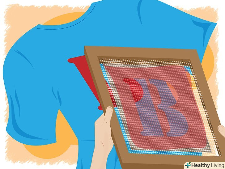 Приготуйте робоче місце.покрийте плоску тверду поверхню обгортковим папером або старими газетами. Помістіть зверху футболку і розпряміть її так, щоб ніде не було нерівностей або складок. Помістіть на футболку трафарет там, де повинен бути малюнок. Зверху помістіть сітку.
