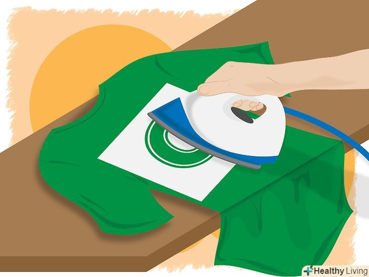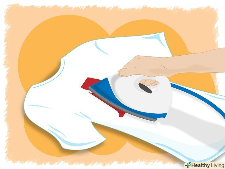 Пропрасуйте футболку.коли фарба повністю висохне, пропрасуйте малюнок через тонку тканину (наприклад, тонкий рушник) праскою в режимі високої температури. Завдяки цьому фарба буде щільно сидіти на тканині і не буде відходити.[2]