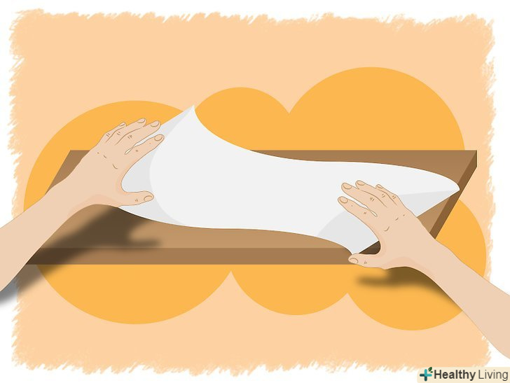 Підготуйте робоче місце.покрийте плоску тверду поверхню обгортковим папером або старими газетами. Помістіть зверху футболку і розпряміть її так, щоб ніде не було нерівностей або складок. Помістіть трафарет на футболку там, де ви хочете нанести малюнок. Приклейте краю трафарету скотчем, щоб він тримався на місці.[1]- Якщо ви переживаєте, що фарба буде просочуватися через тканину, покладіть всередину футболки шматок картону. Таким чином, фарба не просочиться на іншу сторону вивороту.