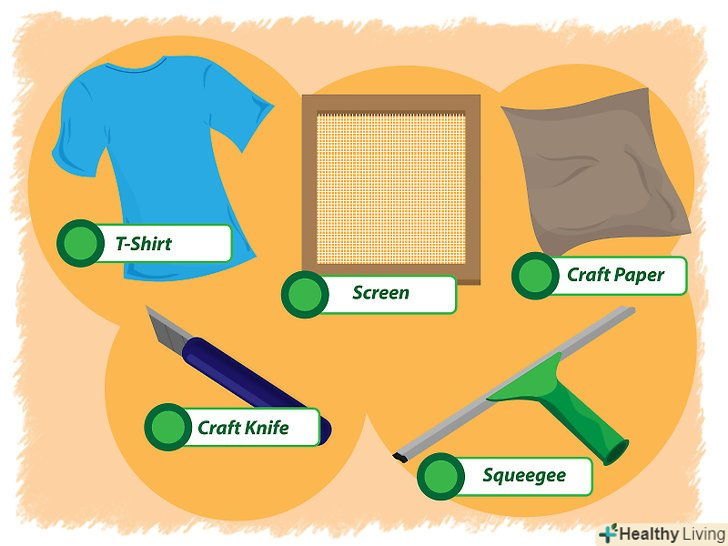 Приготуйте все необхідне.трафаретний друк-це прикладна образотворча техніка, складність якої залежить тільки від вас. При трафаретного друку використовується трафаретна сітка, за допомогою якої фарба рівномірно розподіляється по тканині відповідно до ескізу. Використовуючи даний метод, можна наносити на тканину кілька шарів фарби, що дозволить додати в малюнок велику кількість деталей. Ось що вам знадобиться:- Футболка. Трафаретний друк підходить для всіх типів тканини, але для новачків найкраще підійде бавовна. Обов'язково виперіть, висушіть і погладьте футболку перед нанесенням малюнка.