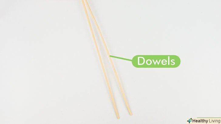 Виберіть відповідні стрижні.завдяки стрижням сувій легше розмотується і згортається. Круглі бруски можна придбати в магазині товарів для рукоділля. Виріжте з них стрижні так, щоб їх довжина відповідала ширині аркуша паперу. Буде потрібно два стрижня, по одному на кожен кінець листа. Замість брусків можна використовувати палички для їжі.[21]- Прикрасьте кінці стрижнів стрічками або наконечниками, які можна придбати в магазині товарів для рукоділля. Прикріпіть їх за допомогою гарячого клею.