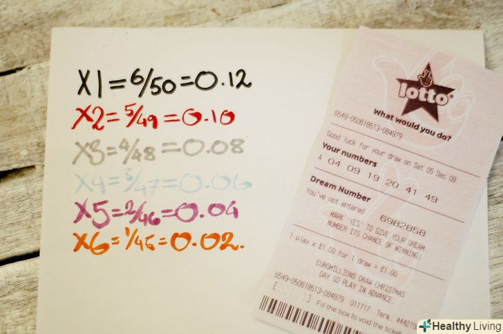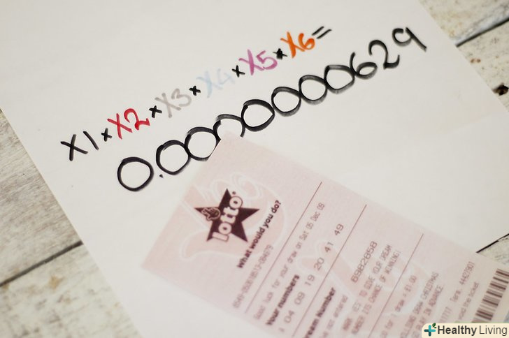 - X1 * X2 * X3 * X4 * X5 * X6 = ~0.00000000977 (це і є ймовірність вашої перемоги в лотереї)