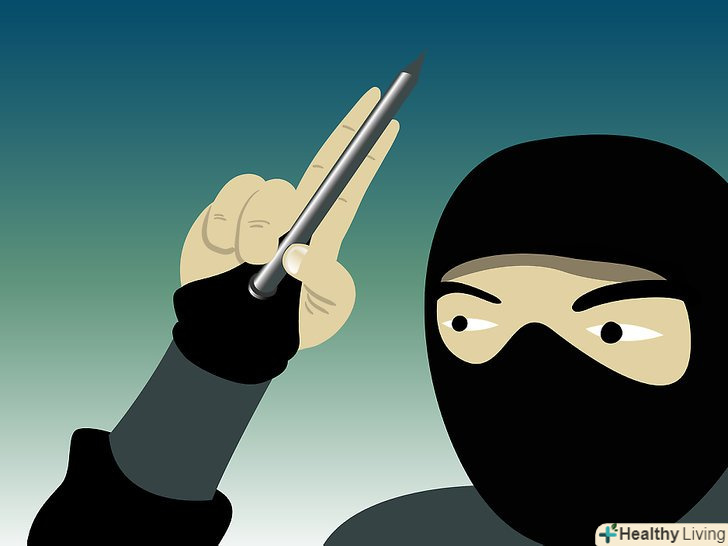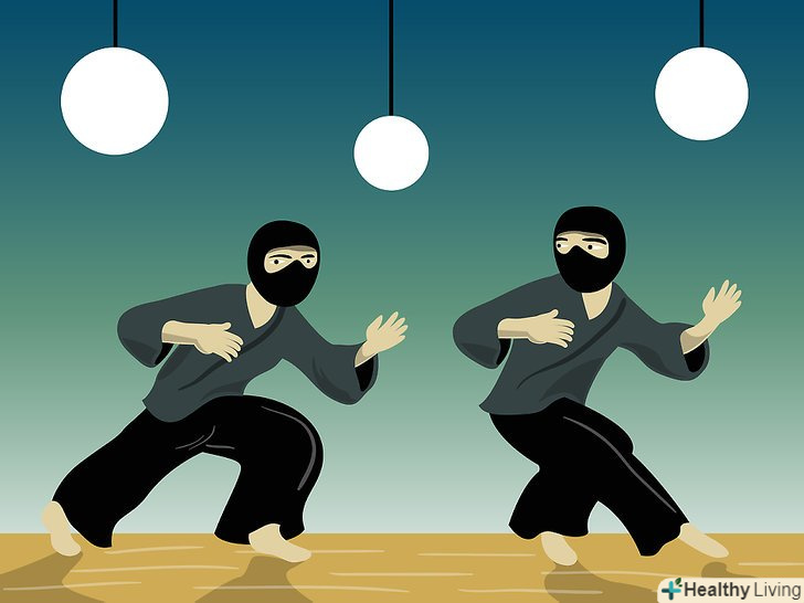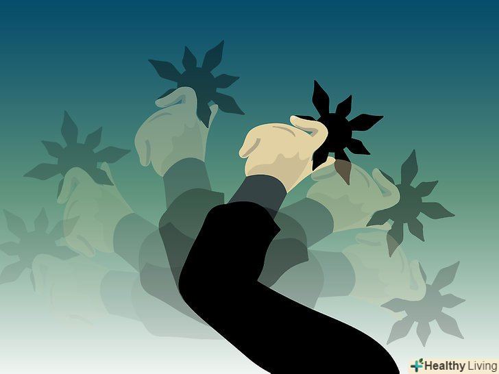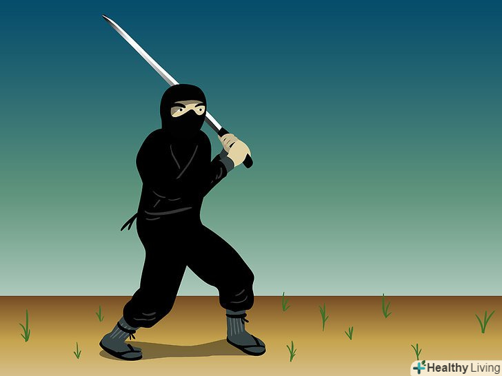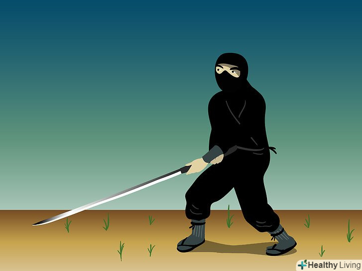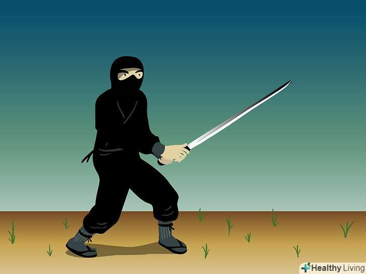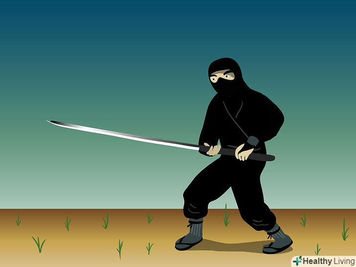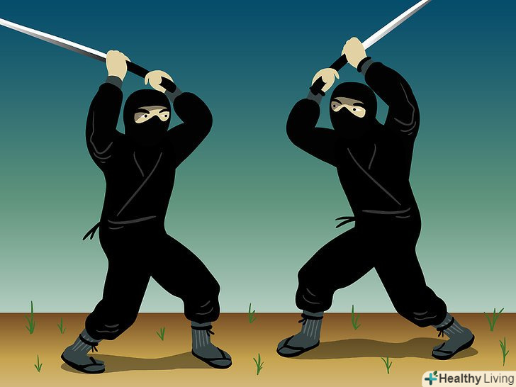 Метання сюрікенів. затисніть сюрікен у своїй руці, як це роблять у фільмах, і киньте його. Направте руку в задню кишеню з сюрікени, дістаньте наступний і відразу ж метніть його. Це вимагає практики, але на початку головне приділяти увагу точності кидка, а не силі, дистанції та іншим факторам.- Володіння мечем. нижче будуть описані п'ять основних поз при битві з мечем.