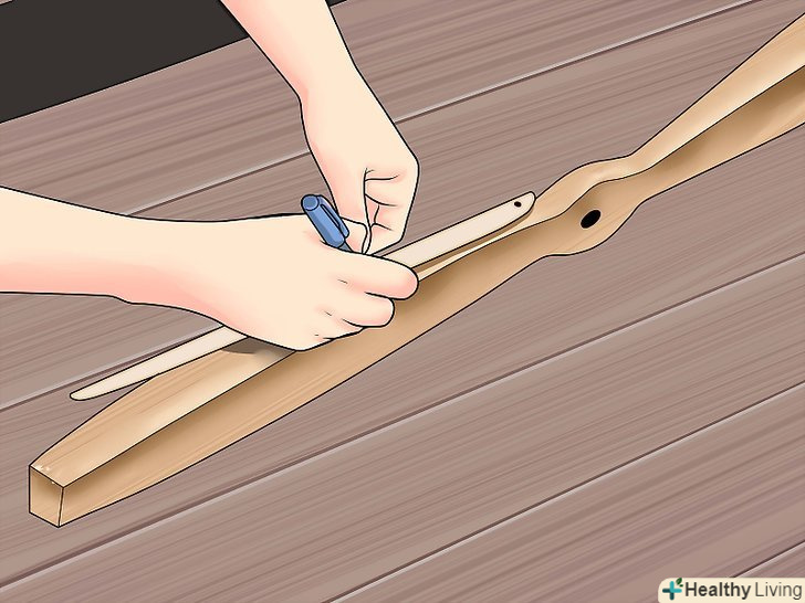 Виберіть матеріал для лопатей. чим надійніше зроблений дерев'яний пропелер, тим краще він справляється з вібраціями повітряного судна, [5] використовуйте міцну, але легку деревину на зразок клена або берези. [6] при виборі деревини звертайте увагу на текстуру волокон. Прямі і рівномірно розподілені волокна дозволять збалансувати пропелер.- Використовуйте 6-8 дощок товщиною від 2 до 2,5 сантиметрів і довжиною близько 2 метрів. Запасні дошки також не завадять. Чим більше шарів, тим міцніше буде пропелер, навіть якщо кожен шар буде дуже тонким. Для економії часу можна звернутися до постачальників матеріалів, які виробляють багатошарову фанеру.