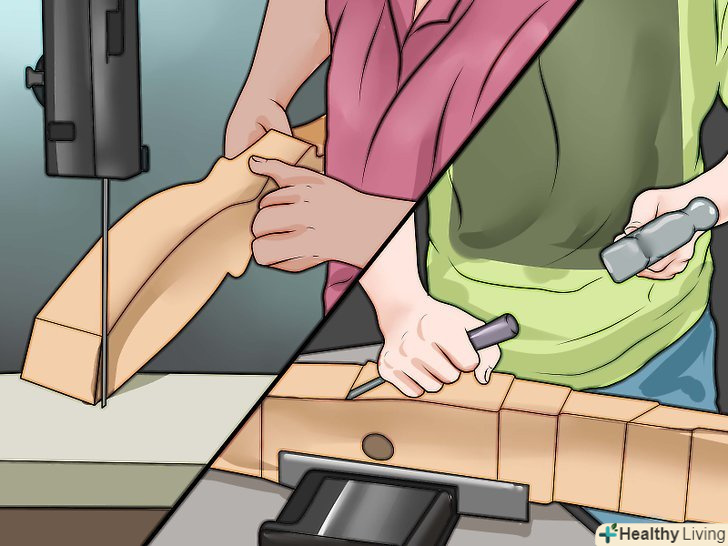 Зніміть надлишок матеріалу, щоб отримати потрібний кут. використовуйте пилу, щоб зняти всю зайву деревину. Потім використовуйте стамеску або стрічковий шліфувальний верстат, щоб надати деталі точну форму. Шліфуйте до тих пір, поки лопать не стане гладкою.- Потрібна висока точність готового виробу, тому для шліфування може знадобитися до 60 проходів, [8] щоб отримати бажаний результат. Приготуйтеся до того, щоб витратити на таку роботу кілька годин.