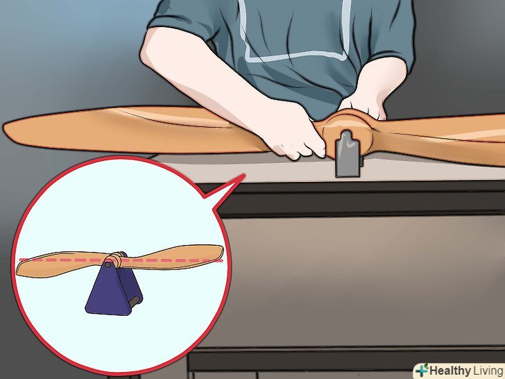 Перевірте балансування пропелера. протягніть в центральний отвір пропелера прямий пруток і перевірте, наскільки рівномірно збалансовані по вазі обидві лопаті. Якщо лопаті розташувалися горизонтально, то пропелер добре збалансований.