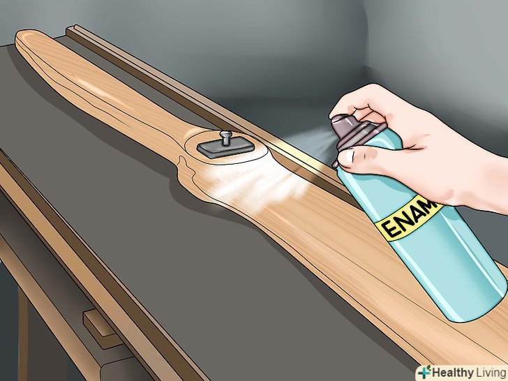Покрийте пропелер шаром лаку. Лак герметично покриє деревину і захистить виріб від вологи і погодних впливів. Нанесіть шар лаку на всю поверхню і дайте висохнути протягом 24 годин. При бажанні нанесіть другий шар.- Також можна пофарбувати кінці лопатей яскравою фарбою жовтого або червоного кольору, щоб вони були помітні в процесі обертання.