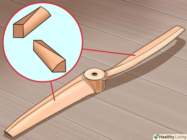 Визначте кількість лопатей. найчастіше пропелер має дві, три або чотири лопаті. На великих повітряних судах можуть використовувати пропелери з ще більшою кількістю лопатей. Чим потужніший приводний двигун, тим більше потрібно лопатей для рівномірного розподілу потужності. [1] хоча при великому бажанні ви можете зробити пропелер на три або чотири лопаті, все ж, якщо це перший подібний досвід, краще починати з простого пропелера на дві лопаті. Чим більше лопатей, тим вище вартість, маса готового виробу і тимчасові витрати. [2]