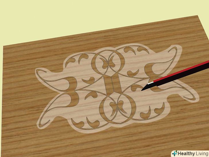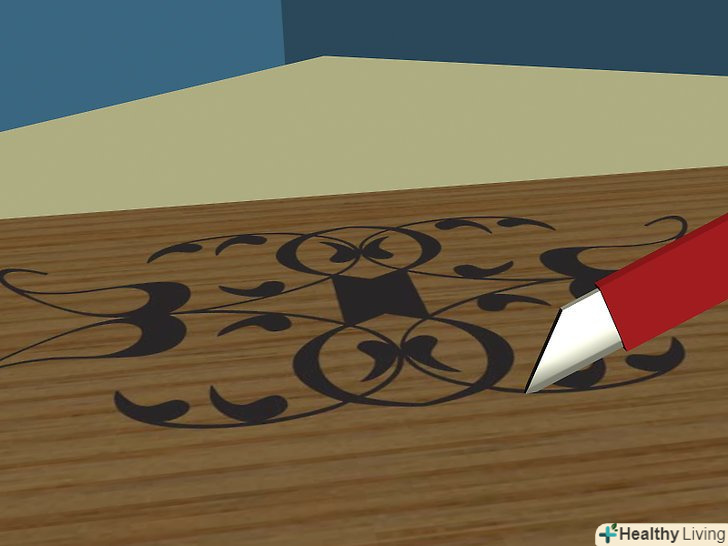 Виберіть орнамент. насамперед, приступаючи до різьблення по дереву, ви повинні вирішити, який орнамент ви будете вирізати. Існує багато місць, де можна знайти хороші орнаменти, наприклад, Магазини товарів для хобі або інтернет. Ви навіть можете намалювати орнамент самостійно.
