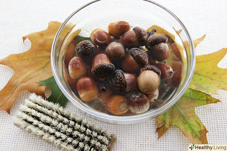 Помийте жолуді в мисці з водою. обережно почистіть їх щіткою, щоб видалити бруд, личинки, і прилиплі листя.