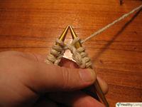 •щоб перейти з лицьової петлі на виворітну, просто піднесіть пряжу до себе, як показано, і почніть в'язати виворітного петлею. Зробіть зворотне, щоб перейти від виворітного до лицьової петлі (відсуньте пряжу від себе).
