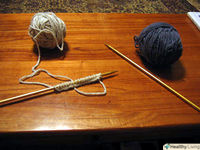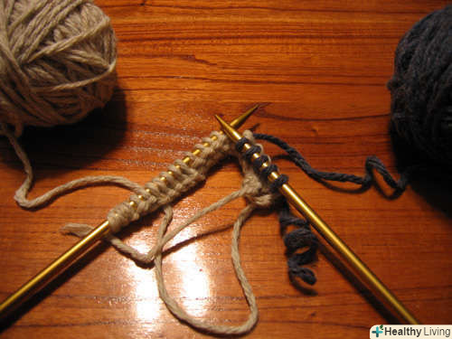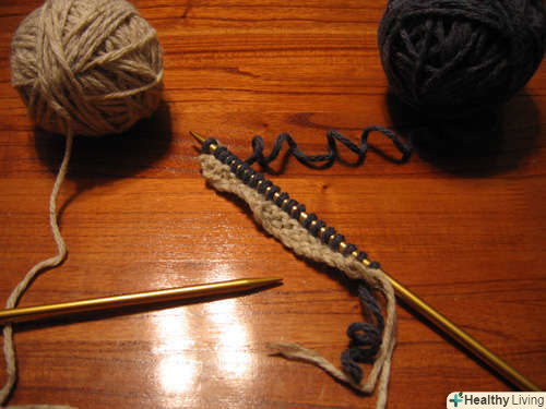 - Візьміть вашу пряжу, виберіть спиці для в'язання і місце, де ви будете їх тримати. Так як цей процес залежить від піднесених петель, краще працювати з пряжами середньої товщини. Виберіть два контрастних кольори пряжі.