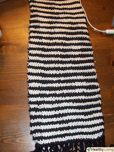 - Закінчіть, коли шарф буде мати бажану довжину. найкраще, це закінчити шарф на ряду, який можна розділити на 4 (Як правило, ви повинні зробити виворітний ряд кольором 2).