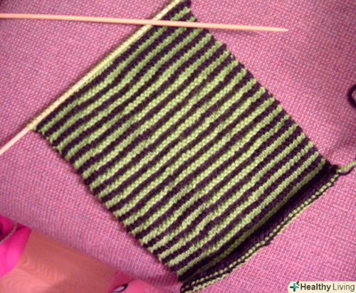 - Сьомий ряд шарфа: перейдіть на Цвет2, і в'яжіть лицьовій петлею поперек.