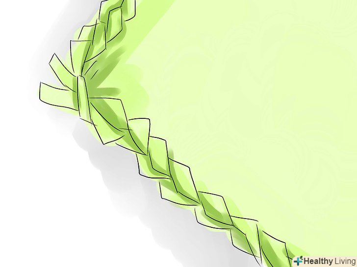 Розріжте останній шматок бахроми навпіл. використовуйте її, щоб зав'язати вузол навколо першої бахроми. Постарайтеся зробити хоча б подвійний вузол або навіть потрійний, якщо бахрома досить довга. Таким чином, у вас буде тільки один вузол на всьому покривалі.- Ви закінчили! І ні, краю не розплетуться. Якщо ви сплели всі шматки, нічого страшного не станеться.