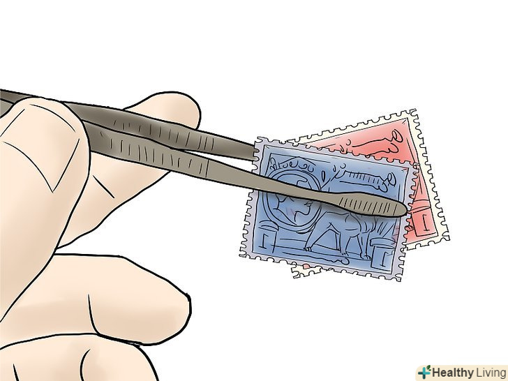 Купіть щипці для марок . нерідко щипці для марок називають пінцетом – насправді, ці два інструменти дуже схожі один на одного, але і відмінності між ними немаленькі. Щипці, на відміну від пінцета, захоплюють папір більш дбайливо, а завдяки відсутності гострих кінців, її практично не травмують. Щипці настільки тонкі, що здатні захопити марку навіть з плоскої поверхні. Щипці для марок можуть відрізнятися по довжині і вазі, тому підбирайте такі, які будуть лежати у вашій руці максимально зручно. Деякі моделі мають загнуті кінці, деякі-загострені наконечники. Не купуйте щипці з занадто гострими кінцями: коли ви будете працювати з марками (особливо з мокрими), ви ризикуєте пошкодити папір.