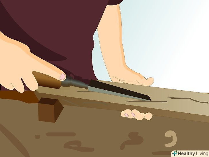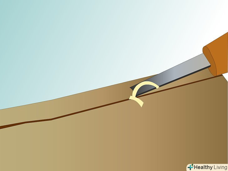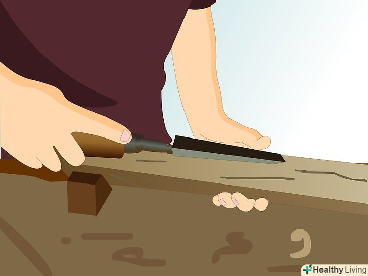Працюючи, знімайте тонку стружку, інакше ризикуєте розколоти або пошкодити дерево.- Робіть стамескою ковзаючі або ріжучі рухи, зрізуючи поперек верхніх волокон деревини.