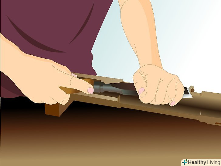 Підніміть, опустіть або поверніть рукоятку, щоб досягти бажаного ефекту.- Щоб вирізати глибше, утримуйте долото перпендикулярно до дерева і різко вдарте по ручці дерев'яним молотком.