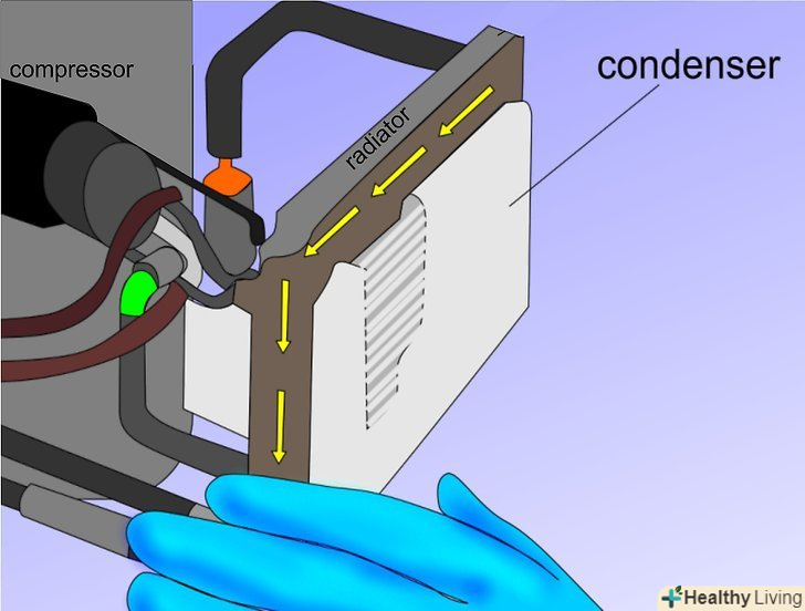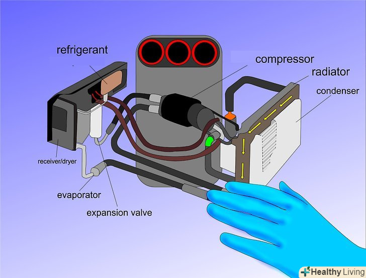 Переконайтеся, що компресор працює.- Заведіть машину, включіть кондиціонер і загляньте під капот. По виду компресор нагадує насос без заливної горловини. У будь-якому випадку, знайдіть його розташування згідно з інструкцією користувача автомобілем.