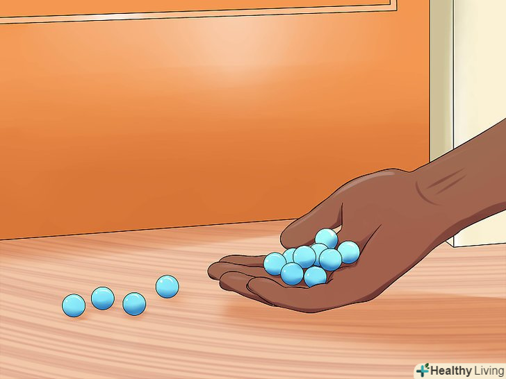 Розсипте скляні кульки перед вхідними дверима. [3] це може бути дуже травмонебезпечно, тому двічі подумайте, перш ніж влаштовувати подібну пастку. Скляні кульки повинні лежати на твердій підлозі, інакше на них навряд чи хто-небудь послизнеться. Постарайтеся використовувати близько 25 кульок.- Не забудьте врахувати напрямок відкривання дверей. Якщо двері відкриваються всередину, а Ви залишите кульки занадто близько до дверей, то непроханий відвідувач просто відкотить кульки зі свого шляху дверима.