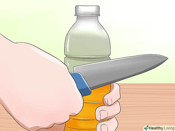 Розріжте навпіл пластикову пляшку з яким-небудь напоєм. спробуйте взяти пляшку, яка вже наполовину порожня. Спочатку зніміть з пляшки етикетку, а потім розріжте її на 2,5 см вище рівня залишився напою. Зробіть повний розріз по колу, щоб можна було розімкнути верх і низ пляшки. Далі абияк скріпіть дві частини між собою скотчем. Потім поверніть на місце етикетку, щоб замаскувати розріз. Залиште пляшку на столі-вона розвалиться, коли хто-небудь вирішить налити собі її вміст, щоб попити. [6]