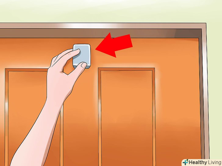 Прикріпіть корпус брелка до дверей. Брелок повинен розташовуватися з внутрішньої сторони дверей, інакше непроханий гість спокійно його зніме. Так як брелок сам по собі дуже легкий, його можна закріпити на двері просто скотчем. [1]