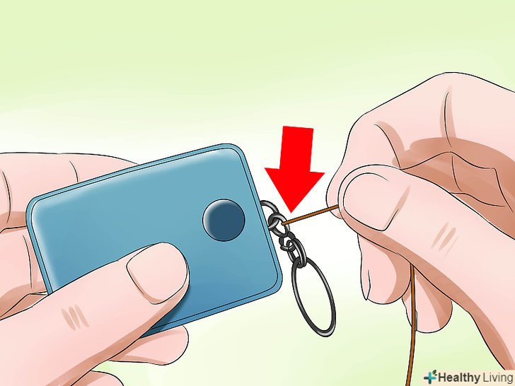 Прикріпіть один кінець дроту до кільця включення звукового сигналу. переконайтеся в тому, що ви прикріпили дріт до тієї частини брелка, яку слід потягнути, щоб включити сирену, а не до самого корпусу брелка. [2]
