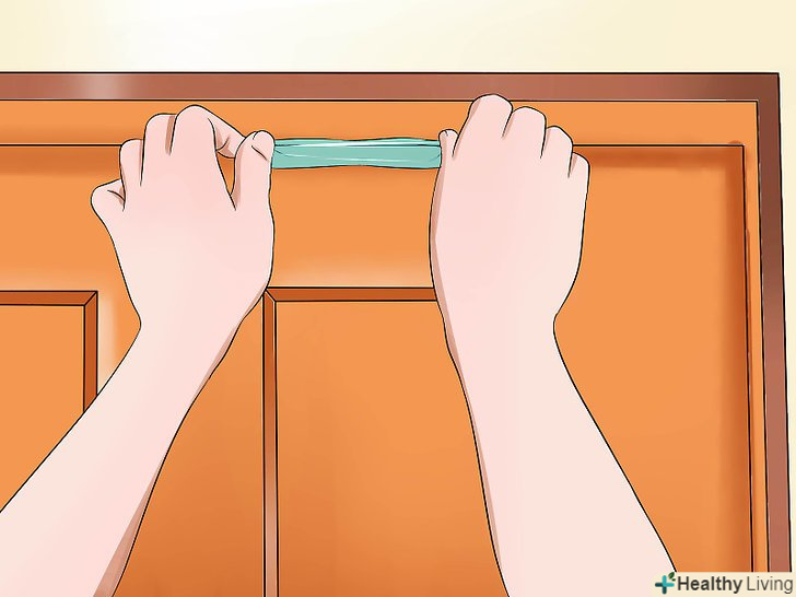 Купіть рибальський дріт і відріжте шматок довжиною з ширину дверного отвору. якщо потрібно, заздалегідь виміряйте дверний отвір. Дроту повинно вистачити на те, щоб розтягнути її від дверей до самого верху дверної коробки.