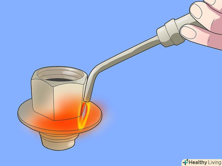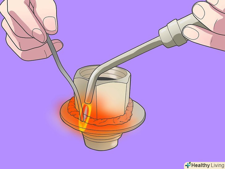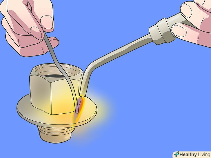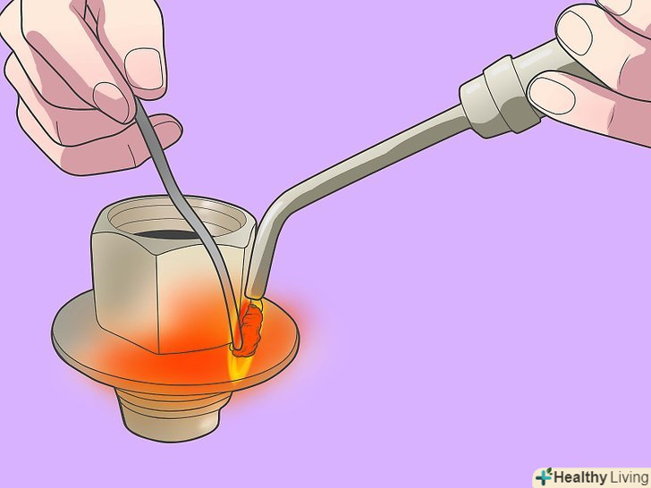 Розігрійте метал. користуючись грілкою, теплової гарматою або паяльником, розігрійте метал поблизу поверхні пайки; почати гріти можна і зі зворотного боку, аби тепло передалося до місця пайки. Направляти на місце пайки пряме полум'я не рекомендується, оскільки це може привести до перегріву припою і флюсу. При користуванні пальником тримайте її сопло в 10-15 сантиметрах (4-6 дюймах) від поверхні металу.