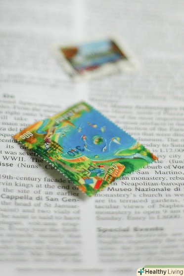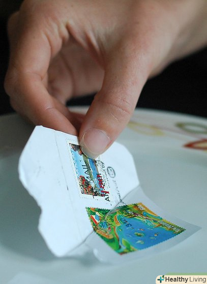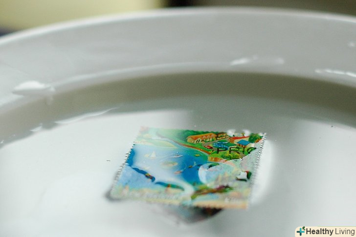 Помістіть вирізаний фрагмент в тарілку, наповнену теплою водою, і почекайте не менше 10 хвилин. Якщо ви боїтеся, що чорнило розмиються, використовуйте холодну воду. У минулому деякі марки виготовляли таким чином, щоб вимочування в теплій воді розмивало друк-це запобігало повторне використання таких марок.