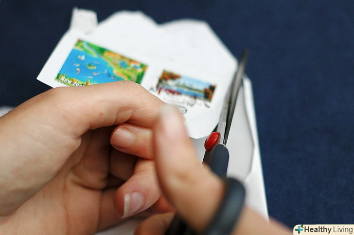 Виріжте кут конверта з марками за допомогою ножиць.
