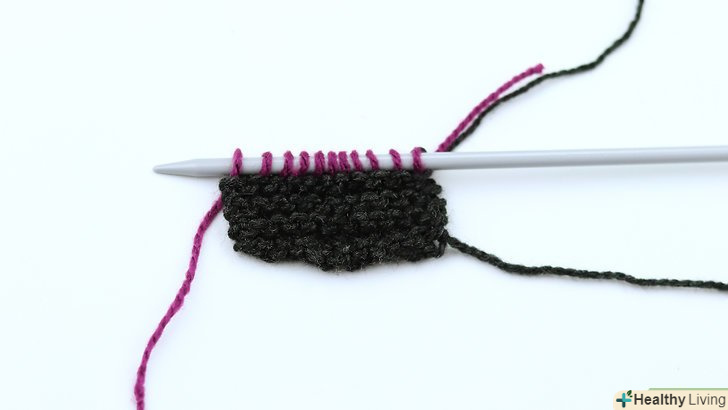 - Почніть в'язати другим кольором. Зв'яжіть п'ять петель і зупиніться.