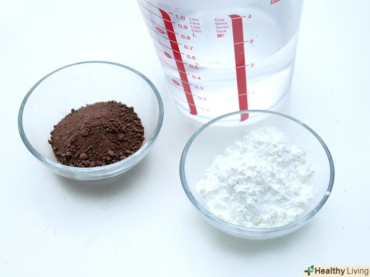 Приготуйте інгредієнти. вам знадобиться кукурудзяний крохмаль, вода, харчовий барвник або какао-порошок.