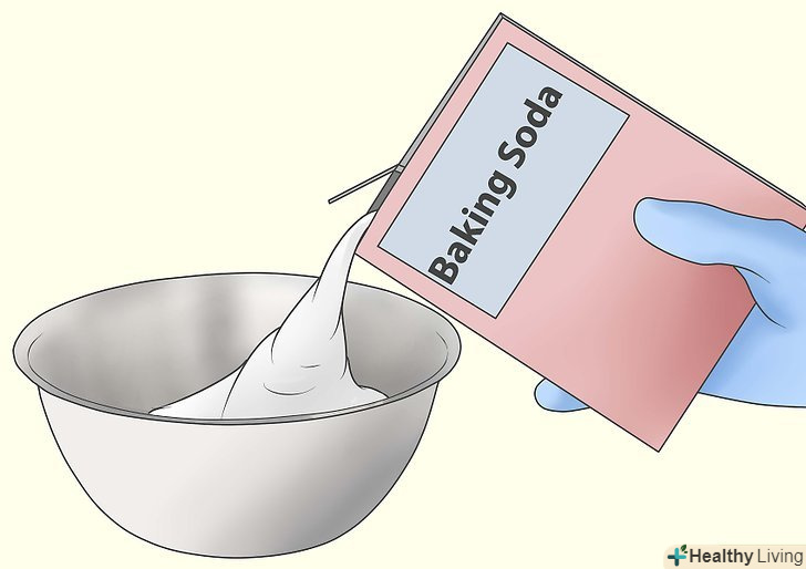 Відкрийте коробку харчової соди і пересипте її в миску. тримайте її в руках на той випадок, якщо ви розіллєте кислоти або трапиться інший казус з ними. Попадання харчової соди на кислоти нейтралізує їх.