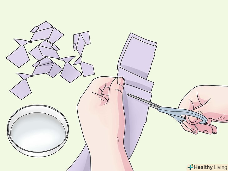 Розріжте цигарковий папір на такі шматочки, які зможуть вміститися в чашку Петрі. в процесі виконання даного кроку кислотна маса охолоне.