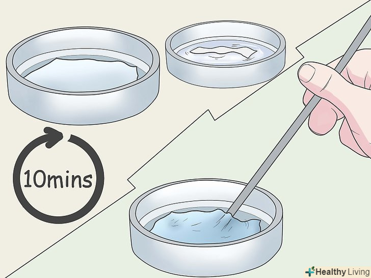 Зачекайте 10 хвилин, потім дістаньте квадратики, використовуючи скляні палички. квадрати затвердіють і стануть набагато міцніше, ніж цигарковий папір.