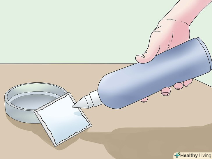 Покладіть кожен квадрат на скляну поверхню. Нахиліть скло так, щоб кислота скла в скляний контейнер.
