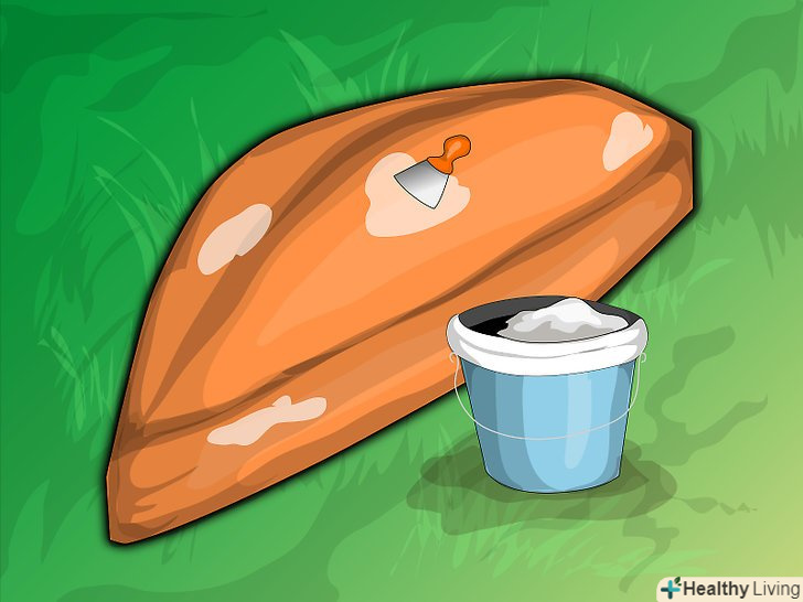 - Заповніть всі пробоїни відповідним заповнювачем. Щоб полагодити пробоїну, виріжте пошкоджену ділянку, промийте її і нанесіть депарафінізуючий розчинник. Зачистіть поверхню орбітальної шліфувальною машиною, приклейте латку з ламінату або акрилу на зовнішню сторону корпусу за допомогою мастила для прес форм на основі полівінілового спирту (ПВС), прикладіть латку зі скловолокна, вирізану за формою отвору. Нанесіть смолу, повторіть процес нанесення скловолокна і смоли стільки, скільки це необхідно, і додайте затверджувач.